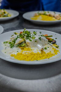 La brigade de salle met en valeur le travail du Chef en expliquant chaque plat avec passion.